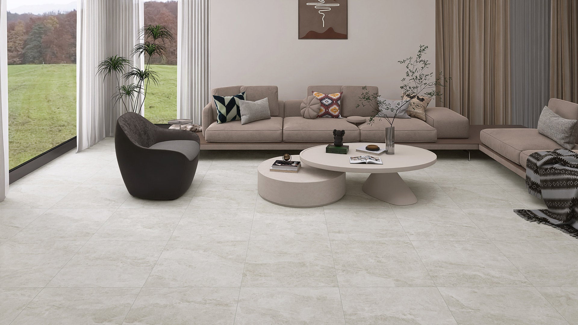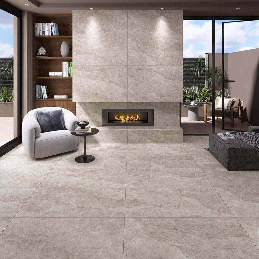 The Taj Mahal range is a refined porcelain surface that emulates the elegance of natural quartzite. It features a creamy white base with delicate veining in tones of beige, Ivory, and soft grey, offering a luxurious marble-like appearance. Known for its durability and low maintenance, it’s ideal for creating timeless interiors in both residential and commercial spaces